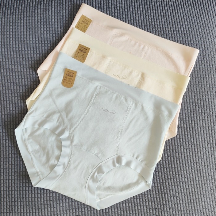 【100%纯棉内裆】三条装新疆长绒棉高腰收腹女士包臀三角内裤全棉