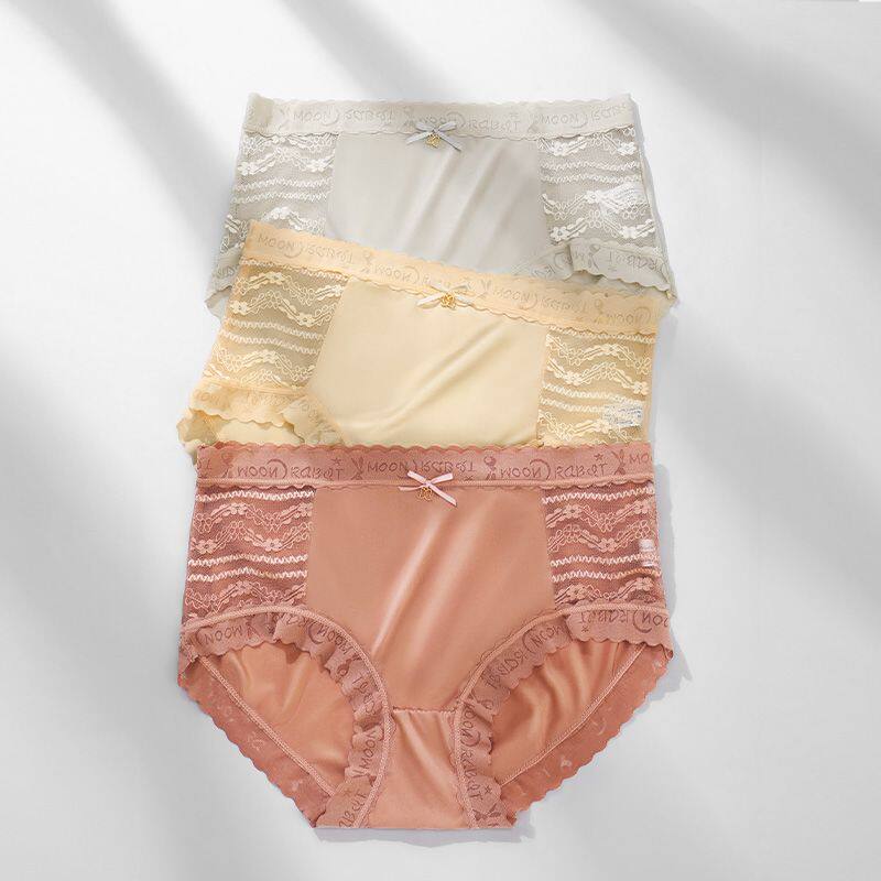 轻奢蕾丝缎面内裤女网纱纯棉加长裆中腰少女三角内裤女士