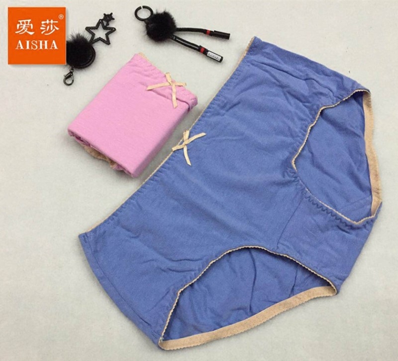 包邮盒装爱莎弹力棉全棉女士小平角内裤纯色中腰透气中年女短裤头