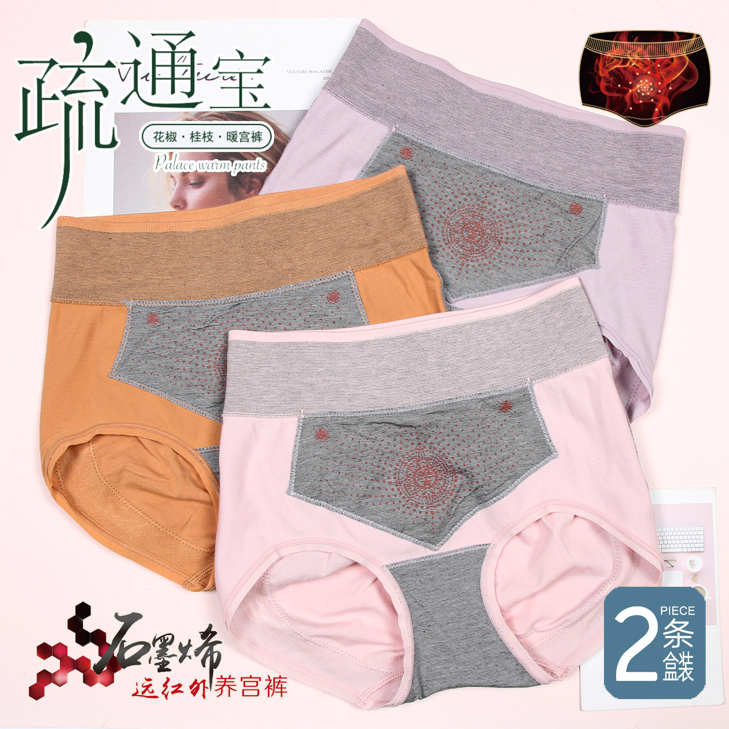 【2条组合】茜专柜疏通宝高腰石墨烯舒适透气女养护暖宫内裤9588