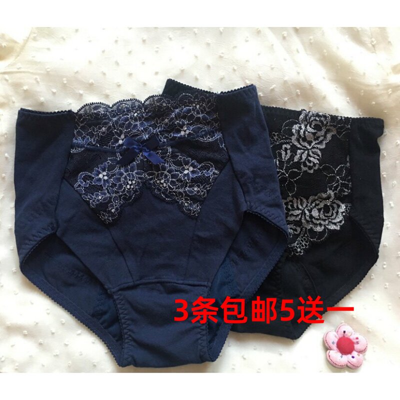新品高端内裤女蕾丝网中高腰透气纯棉裆大码无痕性感胖mm女士