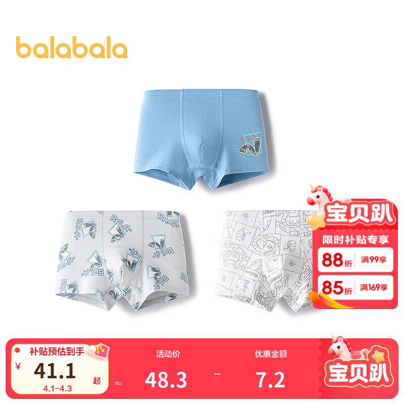 巴拉巴拉男童内裤棉平角小中大童四角短裤抗菌裆不夹P亲肤三条装 绿灰色调00342- 3条 150