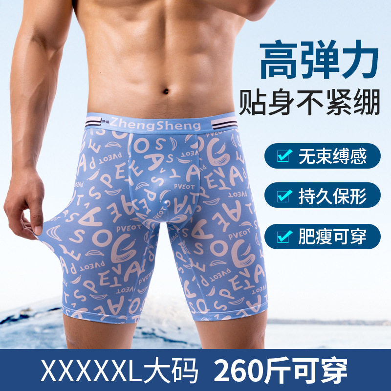 夏季男士运动加长冰丝平角内裤网眼性感透气速干防磨腿超大码裤头