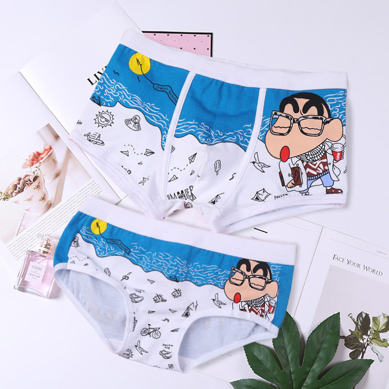 卡通情侣内裤纯棉男士平角裤青年学生日系动漫可爱印花女生三角裤