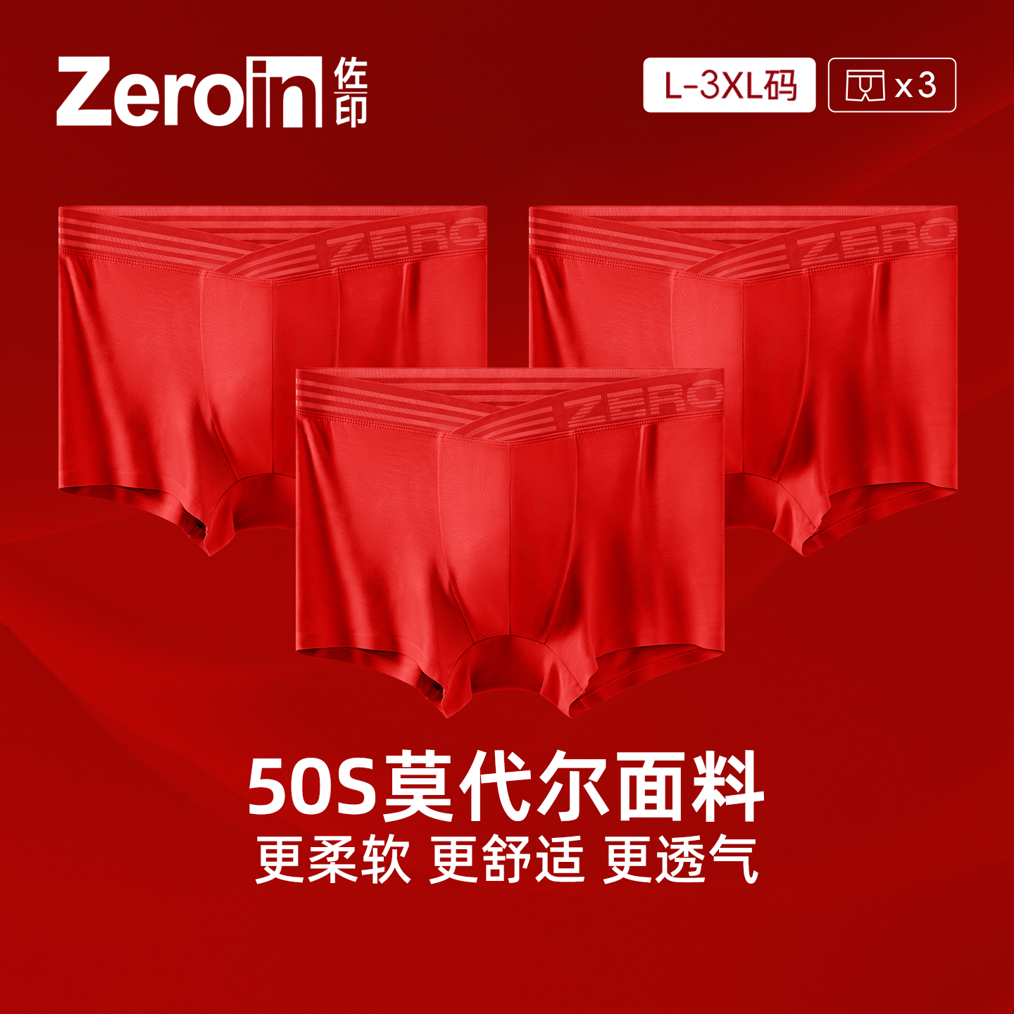 佐印男士红内裤莫代尔大V腰带平角裤男生本命年马年结婚礼物潮