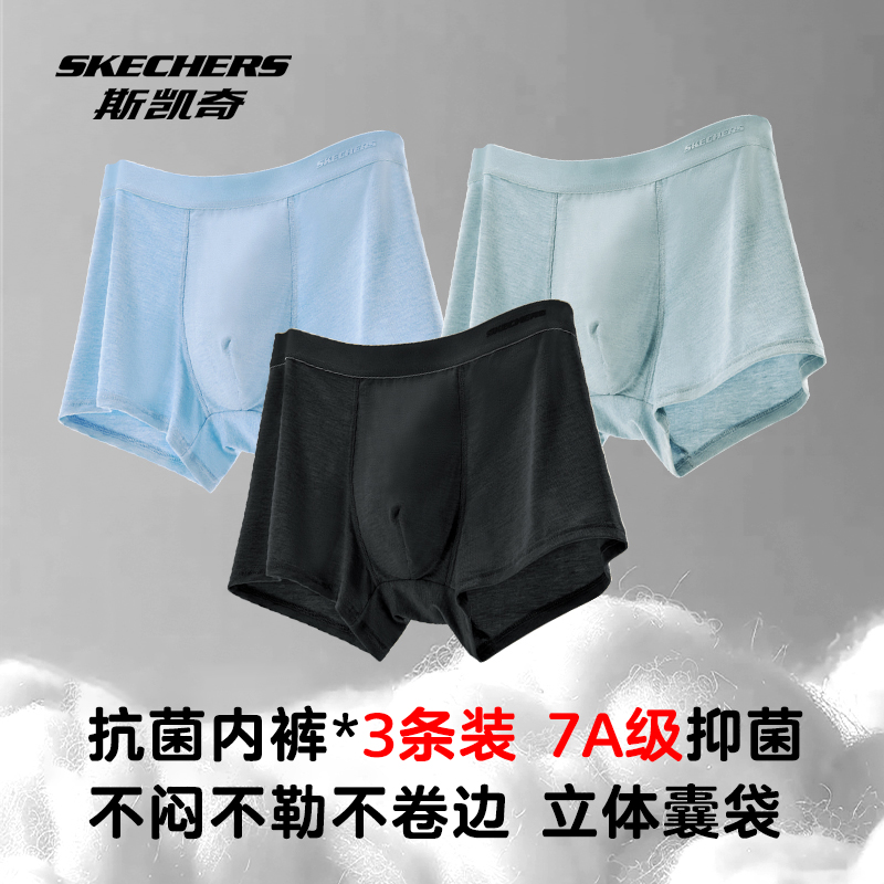 斯凯奇内裤男士新款夏薄款抗菌紫杉醇四角裤衩子透气吸湿平角短裤