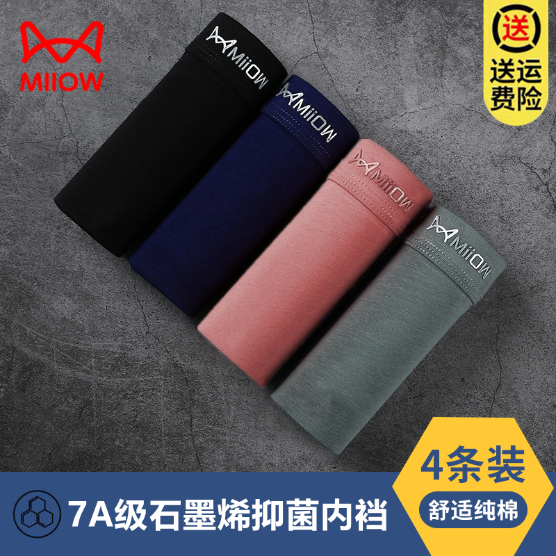 猫人正品男士内裤纯棉石墨烯抗菌透气平角男生青年运动四角短裤头