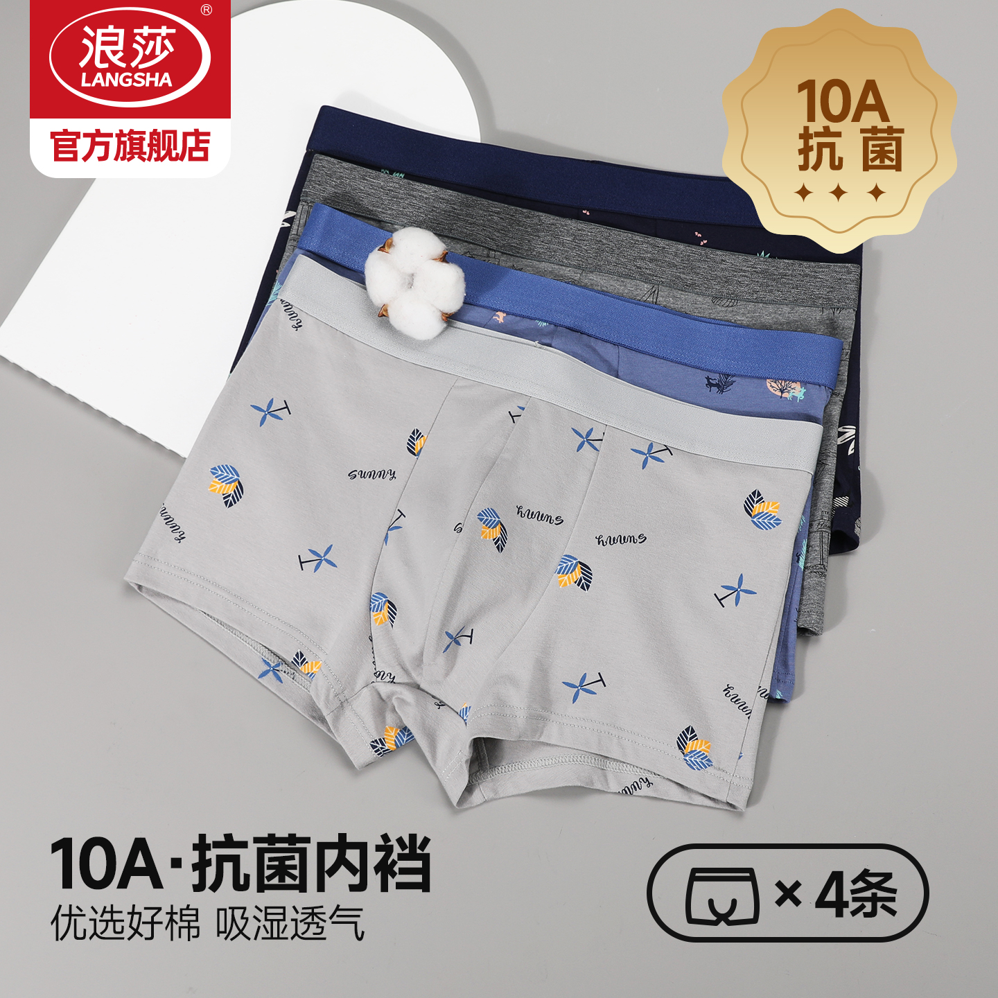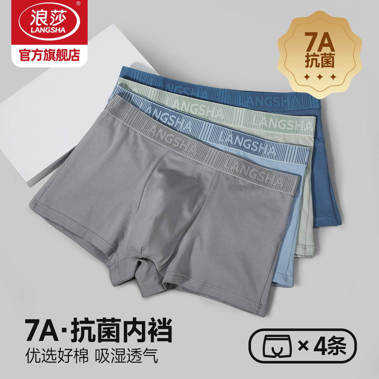 浪莎男士内裤纯棉10A抗菌裆男生四角裤衩2025新款透气平角短裤头