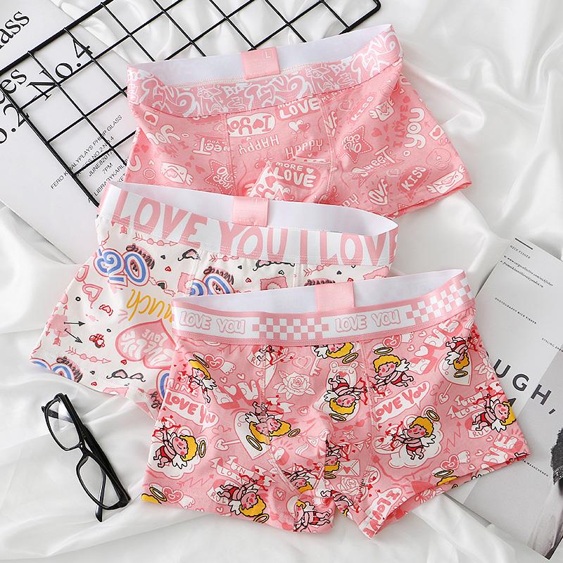 猛男粉色内裤男生纯棉可爱卡通潮流青年全棉透气安全裤男款四角裤