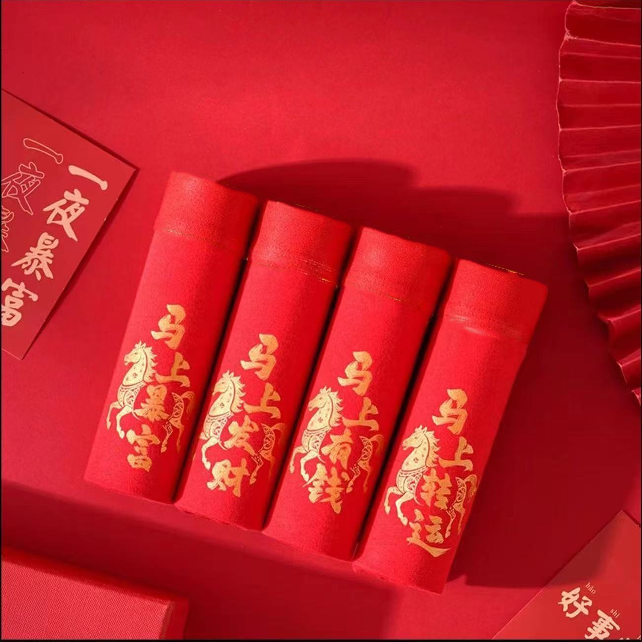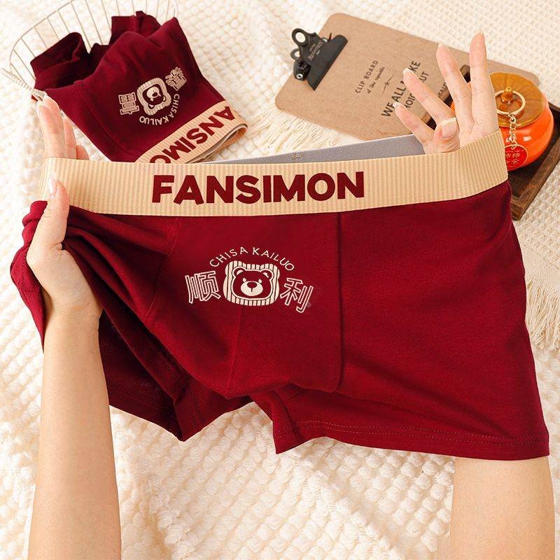 男士内裤红色本命年纯棉属马年中国风结婚红裤头爆款平四角裤衩短