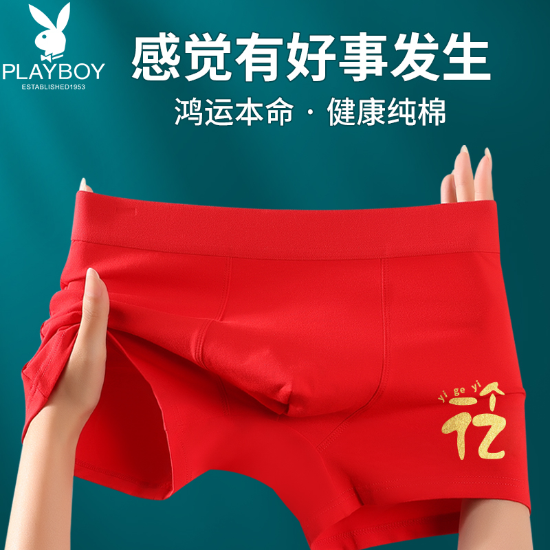 花花公子男士本命年红短裤属蛇年纯棉四角内裤全棉裆平角裤头裤衩