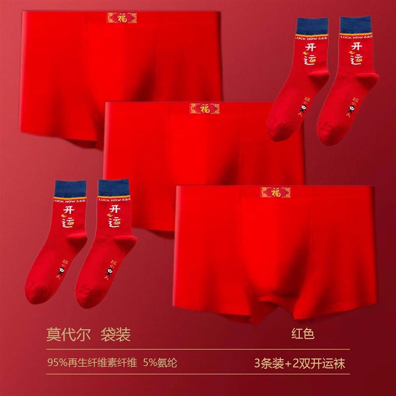 现货速发本命年红内裤男款属蛇年男士平角底大红色结婚四角短裤头