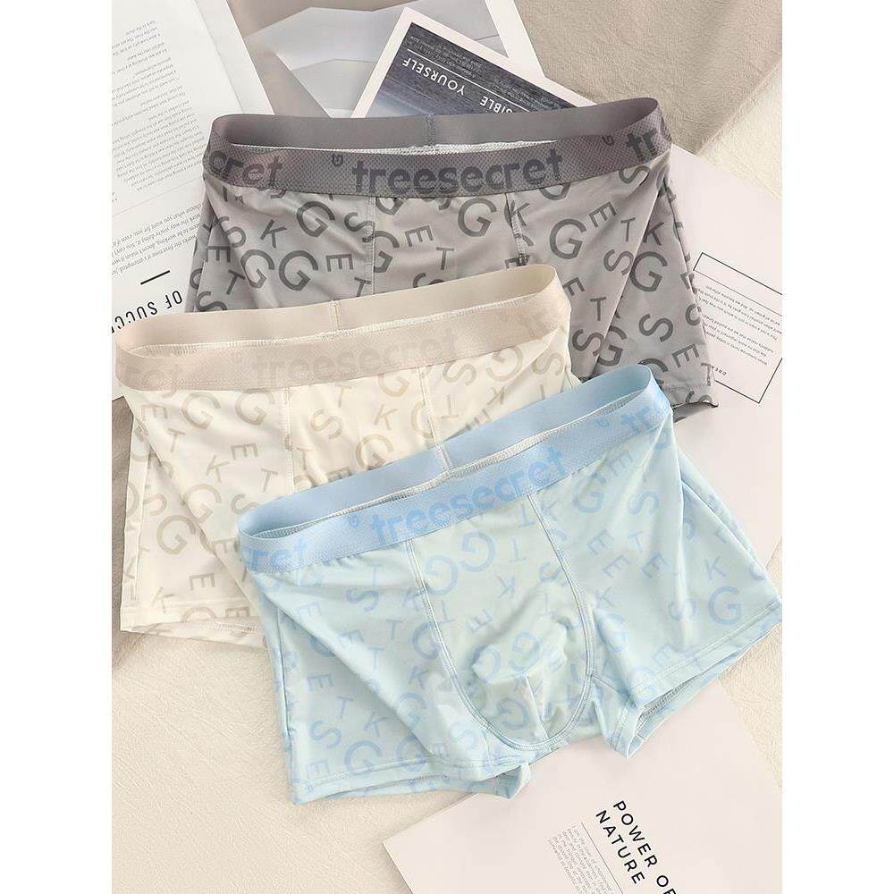 男士冰丝内裤男生夏季薄款2025新款青少年潮流印花透气抗菌四角裤