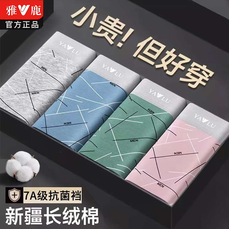 雅鹿品牌男士内裤纯棉礼盒装石墨烯里裆舒适男人棉质透气四角内裤