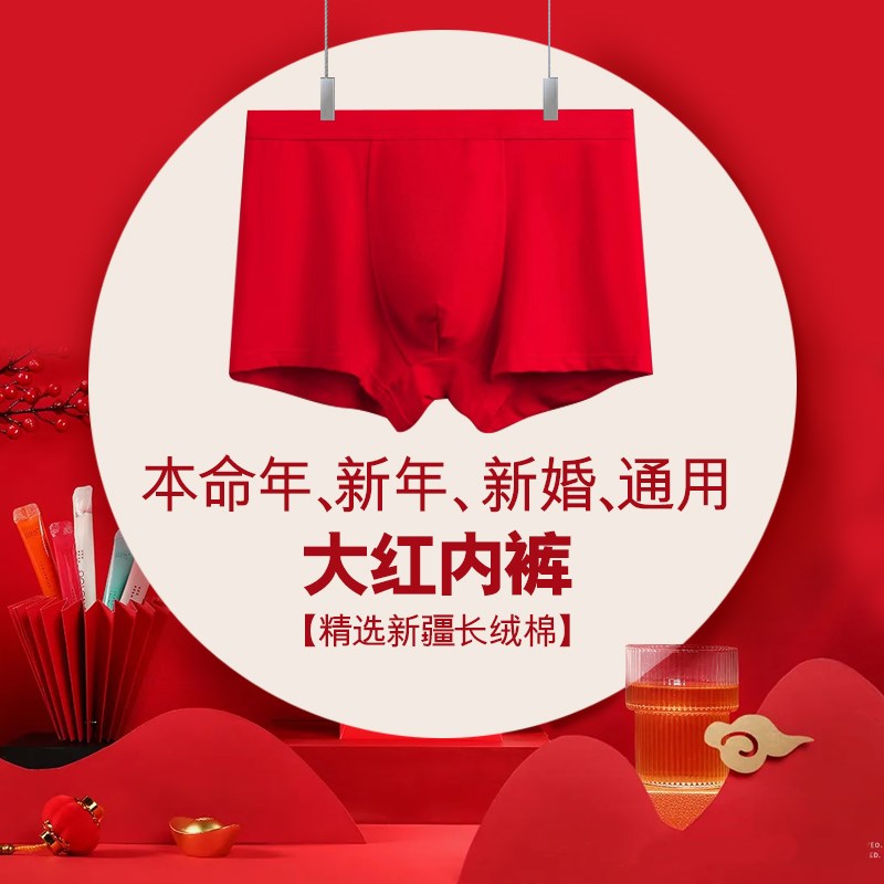 大红本命年男士内裤本命年内裤男改运旺运招财旺财Y纯棉红裤衩