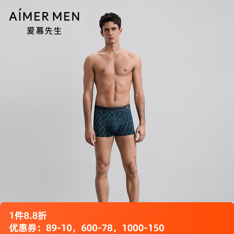 爱慕先生25秋冬新款时尚印花内裤男净痕柔软舒适包臀装腰平角裤