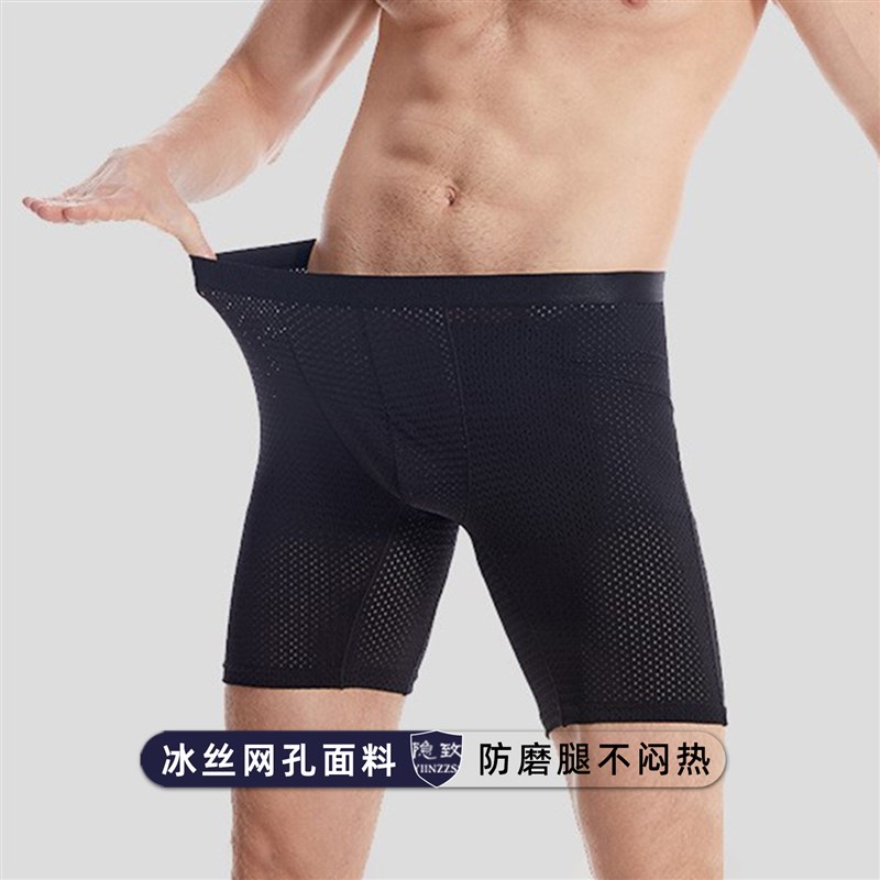 冰丝透气网孔男士内裤加长防磨腿抗菌运动跑步Q不卷边磨裆平角裤