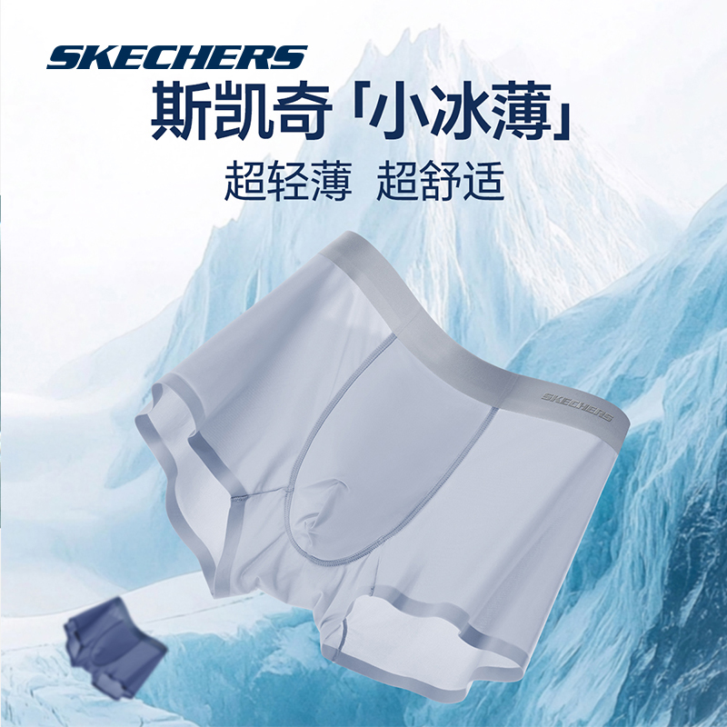 斯凯奇男士桑蚕丝内裤夏季超薄透明男生冰丝四角裤高端宽松裤头