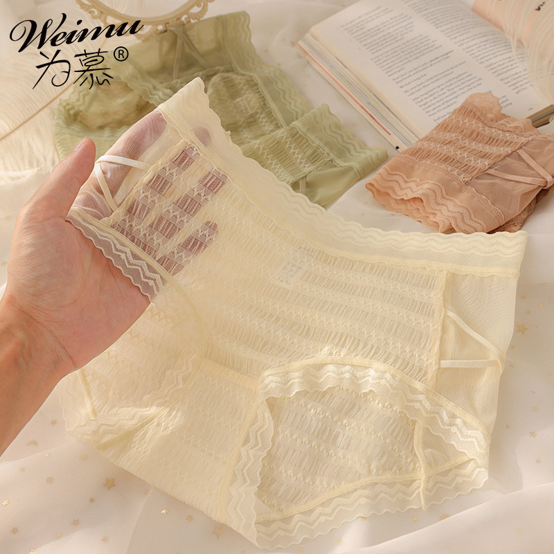 中腰内裤女士蕾丝性感超薄网纱透明包臀无痕三角裤胖mm纯棉裆大码