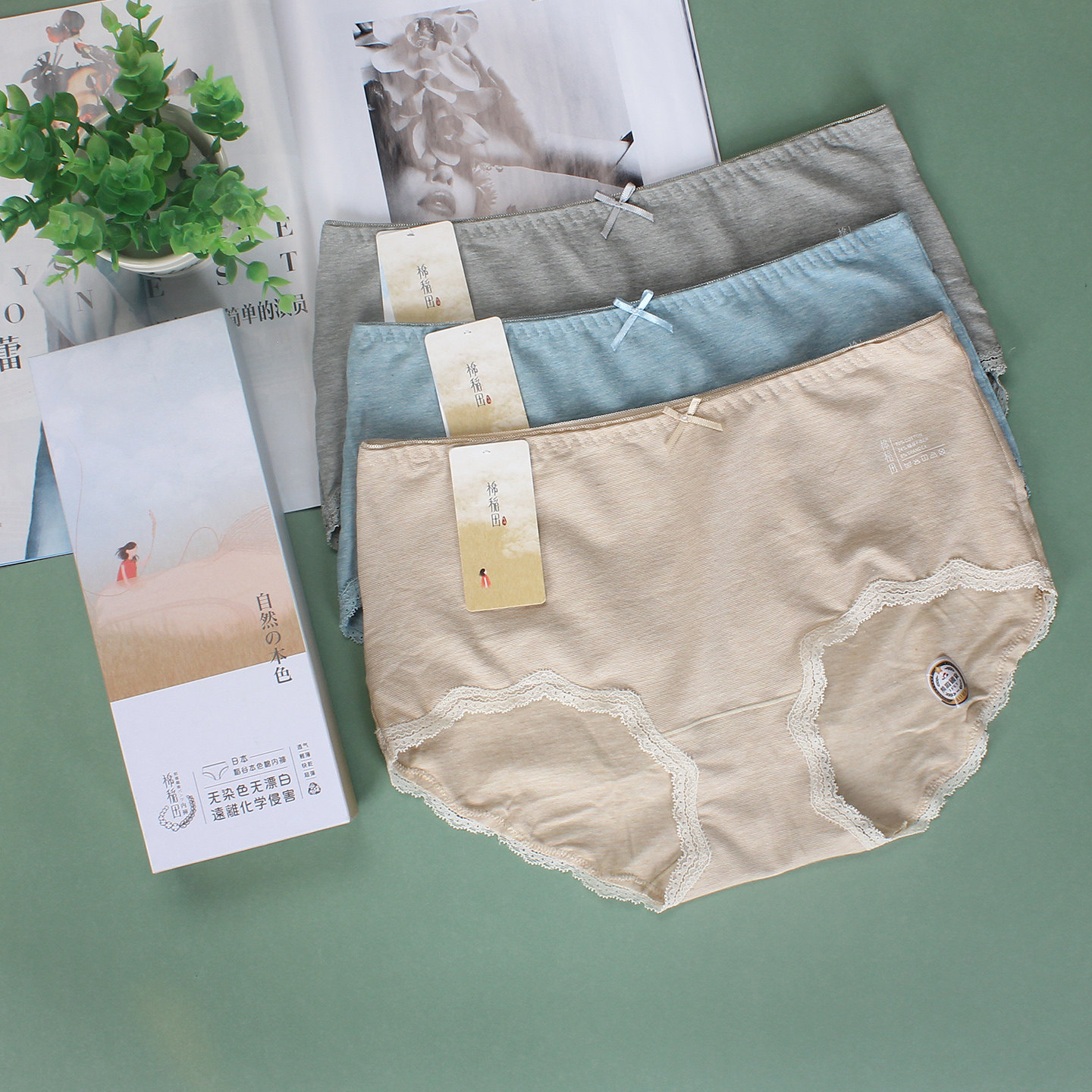 亿宠儿9206棉稻田透气会呼吸简约舒适轻薄有机棉质女生中腰内裤