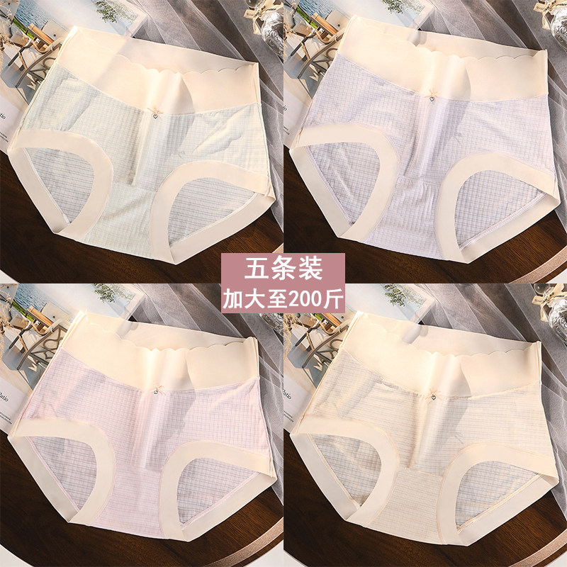 胖mm200斤高腰格子大码内裤女轻收腹舒适无痕女士三角裤轻薄透气