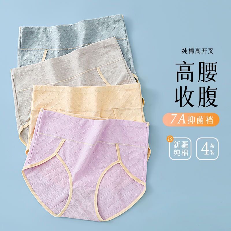 新品高腰女士内裤收腹提臀高开叉大码胖mm石墨烯纯棉抗菌三角裤头