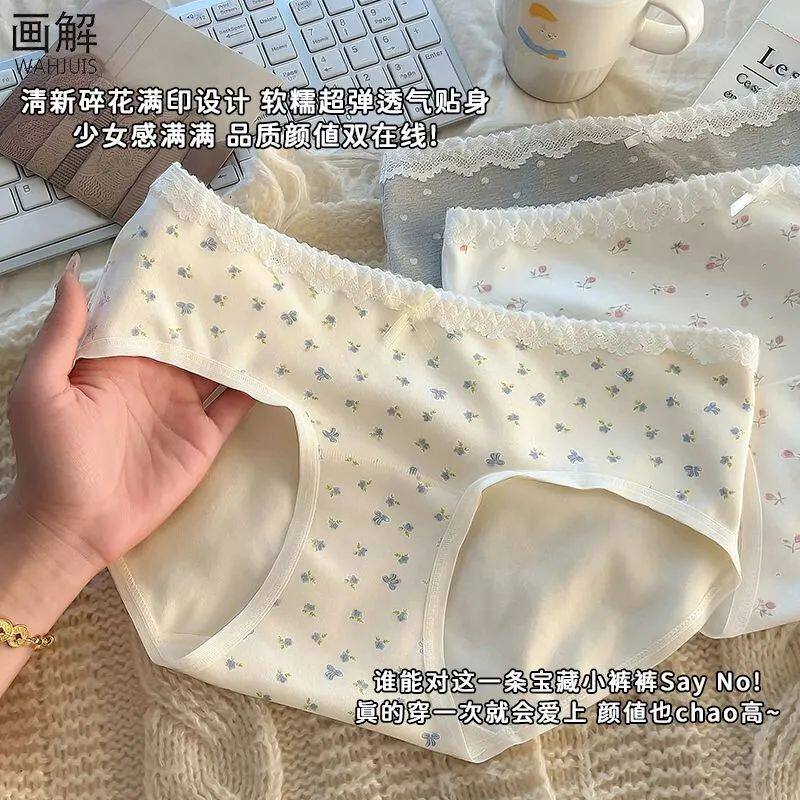 纯棉内裤女全棉10A抑菌裆碎花蕾丝边女生亲肤透气少女三角裤