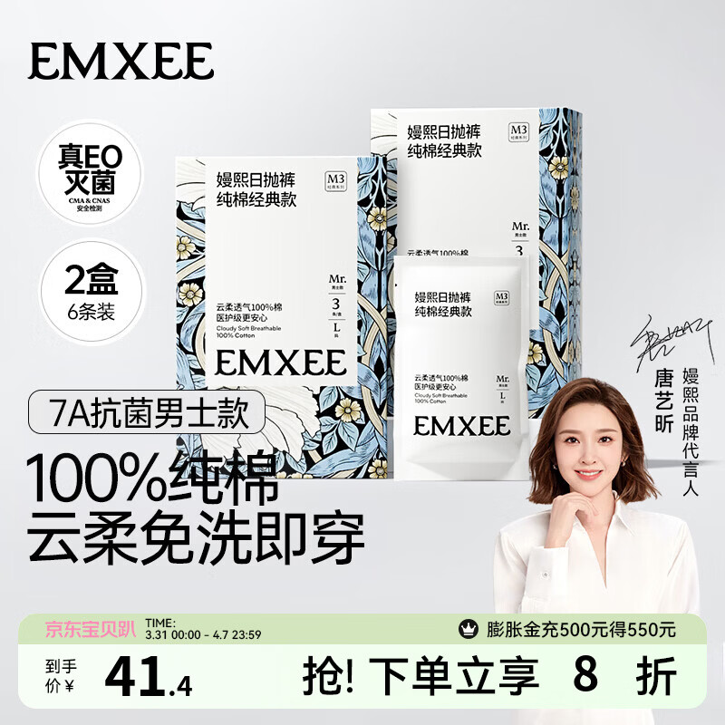 嫚熙(EMXEE)E3一次性内裤平角全棉纯棉短裤四角旅行成人免洗男士内裤大码 7A抗菌100%纯棉【男士款 6条】 XXL 建议150-170斤