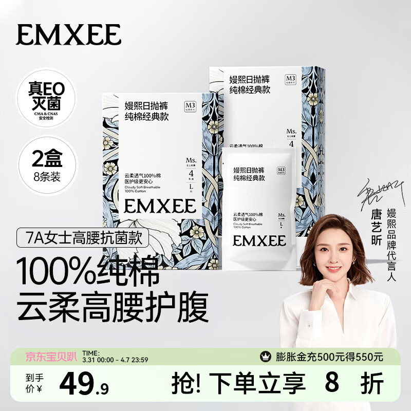 嫚熙(EMXEE)一次性内裤女纯棉无菌旅行短裤产妇月子女士出差免洗高腰款 【7A抗菌纯棉高腰女士款】8条 XL(建议100-120斤)