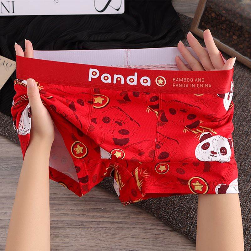 纯棉新款本命年红色男士内裤男生运动平角裤潮结婚透气四角短裤头