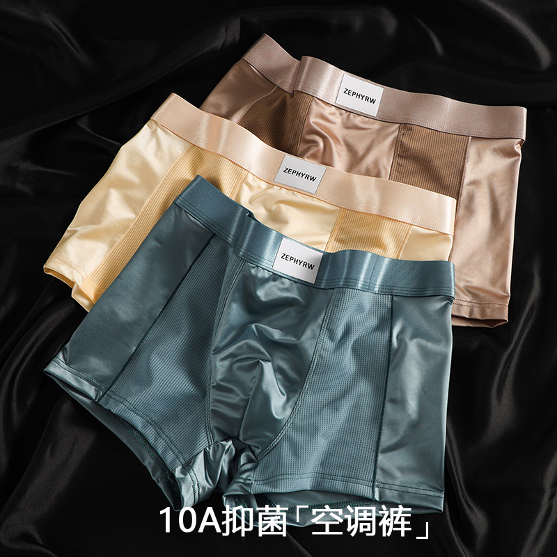 YOIKOOBEAN轻奢缎面空调裤冰丝网眼男士内裤男款抑菌裆透气平角裤