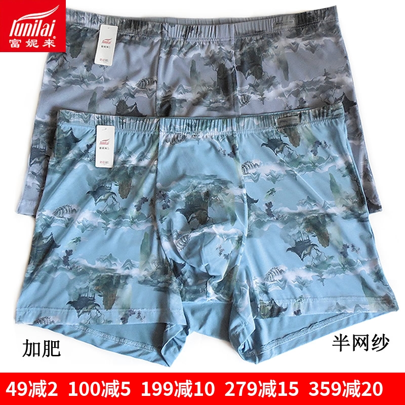 2条 新款富妮来半网纱透气男士内裤莫代尔速干青年加肥平角裤8473