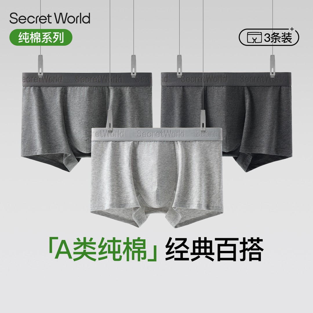 男士内裤棉全身10A抑菌A类吸湿透气高弹百搭运动3条装平角裤衩