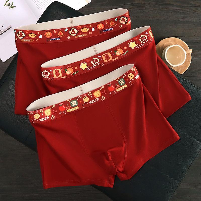 本命年红内裤男士纯棉抗菌经典酒红短裤青少年四角裤头送男友礼物
