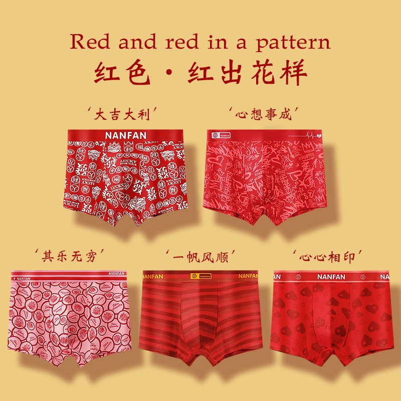 本命年男士内裤纯棉抗菌大红色龙年结婚礼物男款男生平角四角裤衩