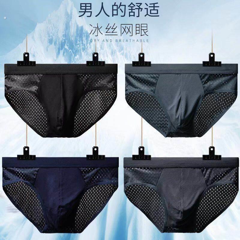 男士冰丝内裤三角裤无痕超薄款透气抗菌清爽网眼孔大码夏季短裤头