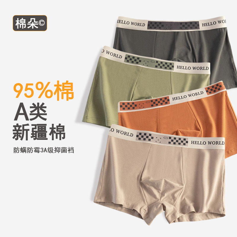 棉朵时光男士内裤2025年新款纯棉透气抗菌裆平角裤舒适弹力四角裤