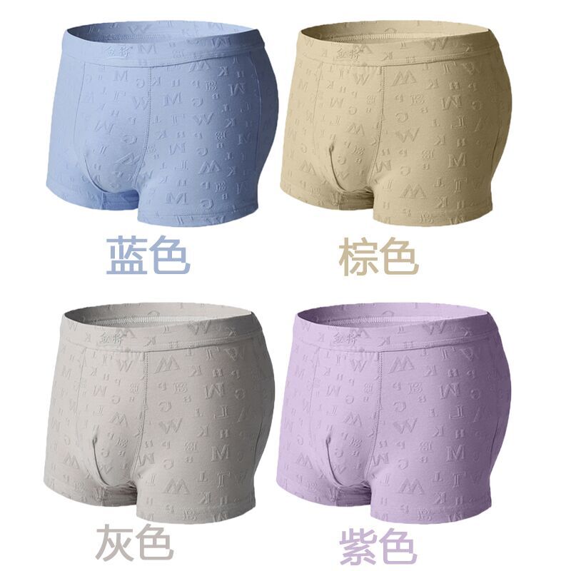 4条装金将男士内裤纯棉四角裤舒适透气时尚个性3D立体提花条纹短