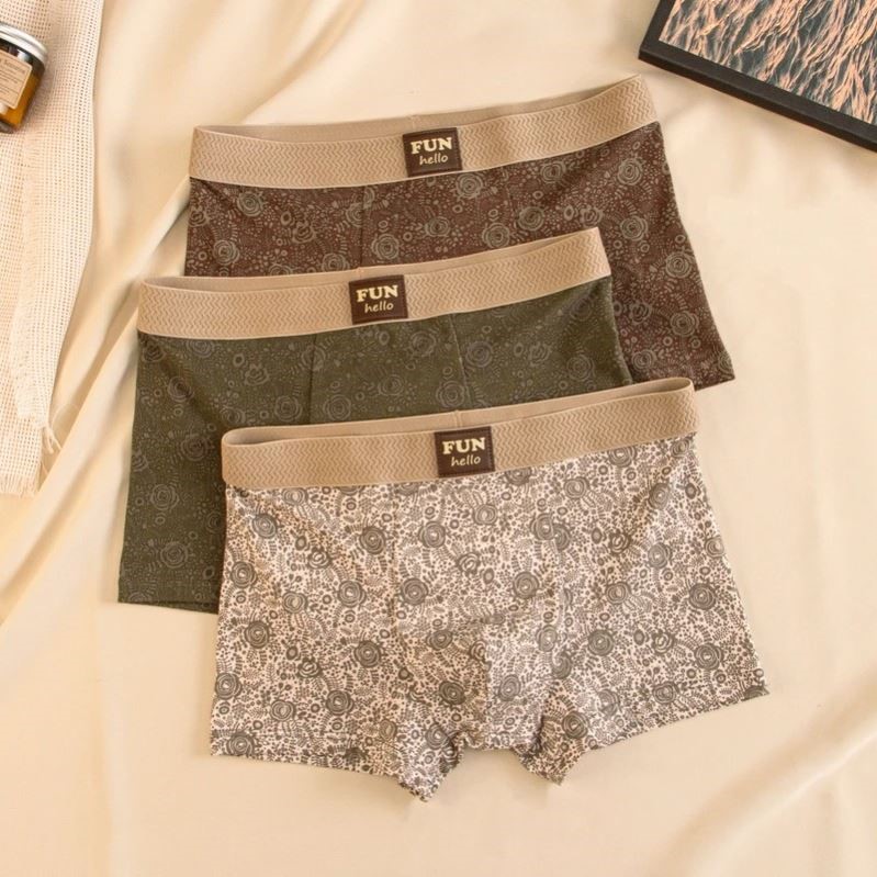 男士内裤10A抑菌古典花印纯棉平角裤男生新款个性舒适透气四角裤