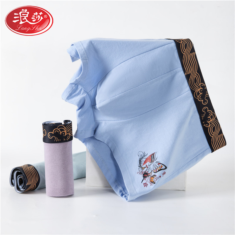 浪莎男士内裤纯棉四角短裤衩中国元素风100%全棉裤裆大码平角裤头