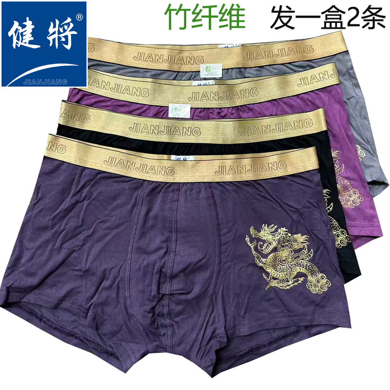 健将男士平角内裤40支竹纤维宽金边弹力橡皮筋金龙烫印立体U凸裆