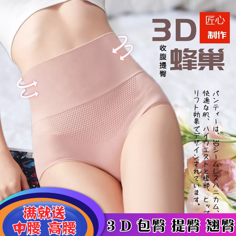 内裤女夏纯棉裆无缝中腰蜂巢日式收腹提臀高腰大码三角裤蕾丝裤头