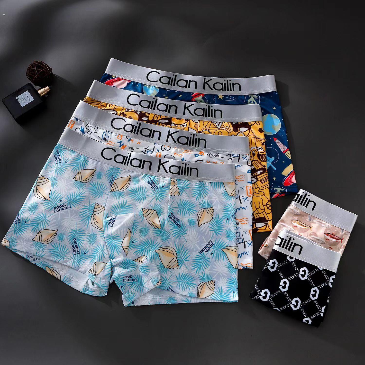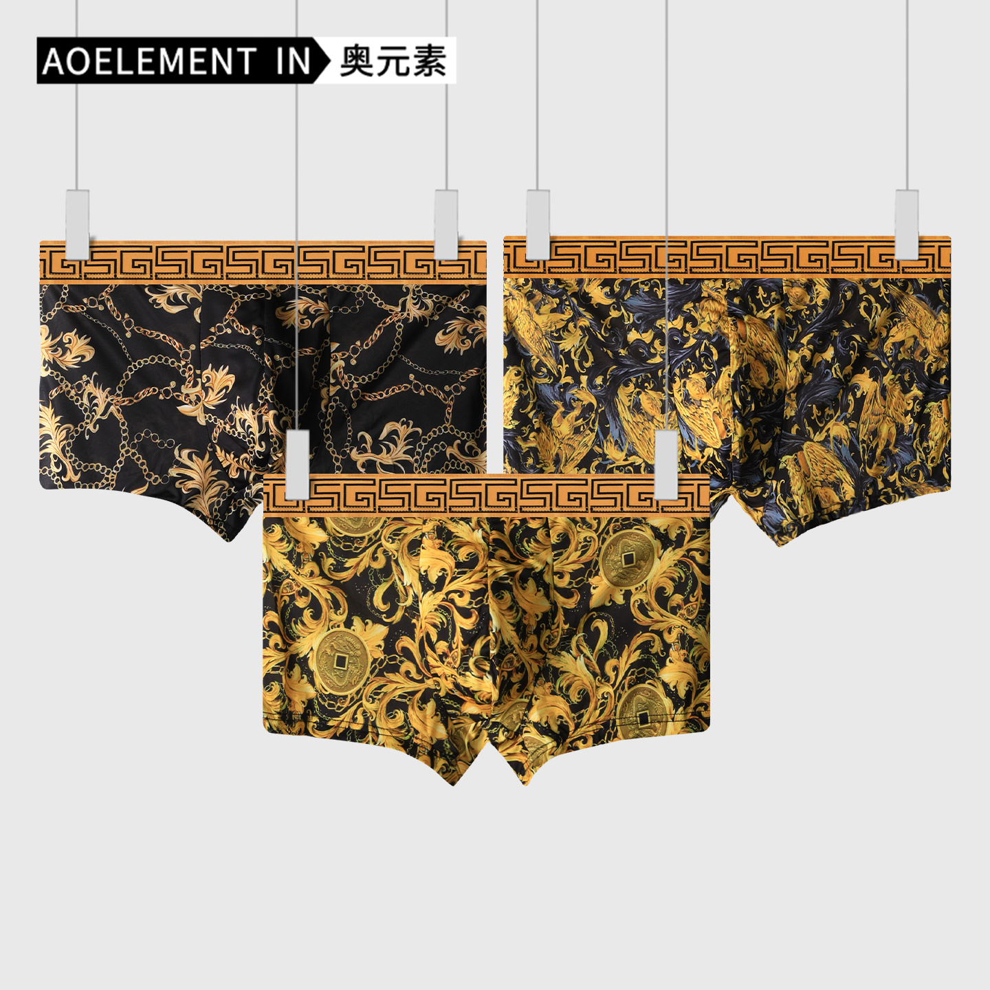 男士内裤夏季冰丝平角裤个性潮流印花四角裤宽松弹力中腰裤衩