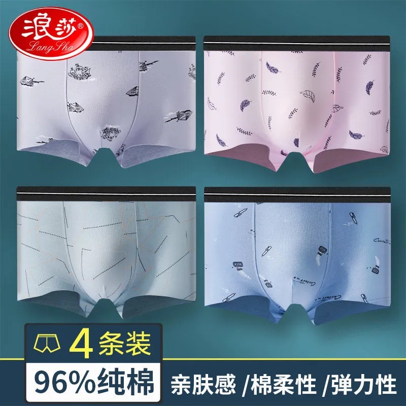 浪莎男士内裤男纯棉裆舒适透气印花高弹平角裤男内裤青少年大码