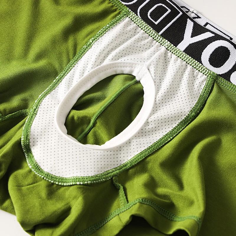 吊环显大男士平角内裤弹力侧开口四角内裤内囊袋枪弹分离式透气