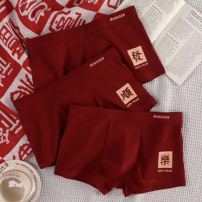 本命年男士内裤男款纯棉抗菌四角短裤2025宽松男生酒红平角裤结婚