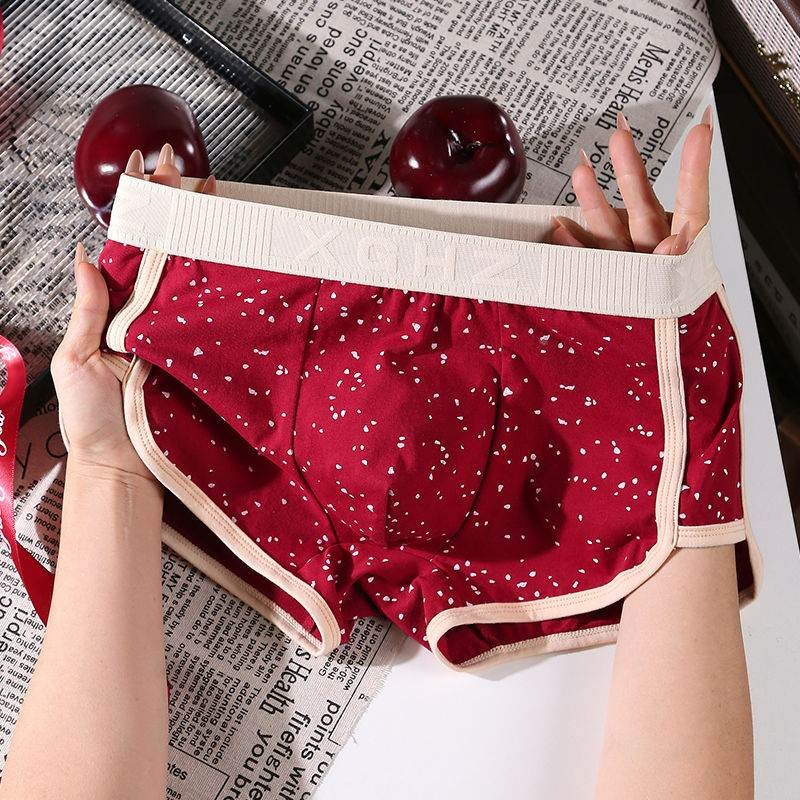 本命年新款男士内裤纯棉青少年酒红透气大红色平角潮流中腰四角裤
