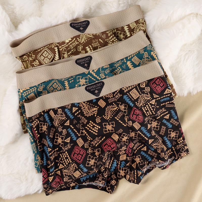 男士冰丝平角裤超薄透气2025新款男生青少年短裤个性民族风运动裤