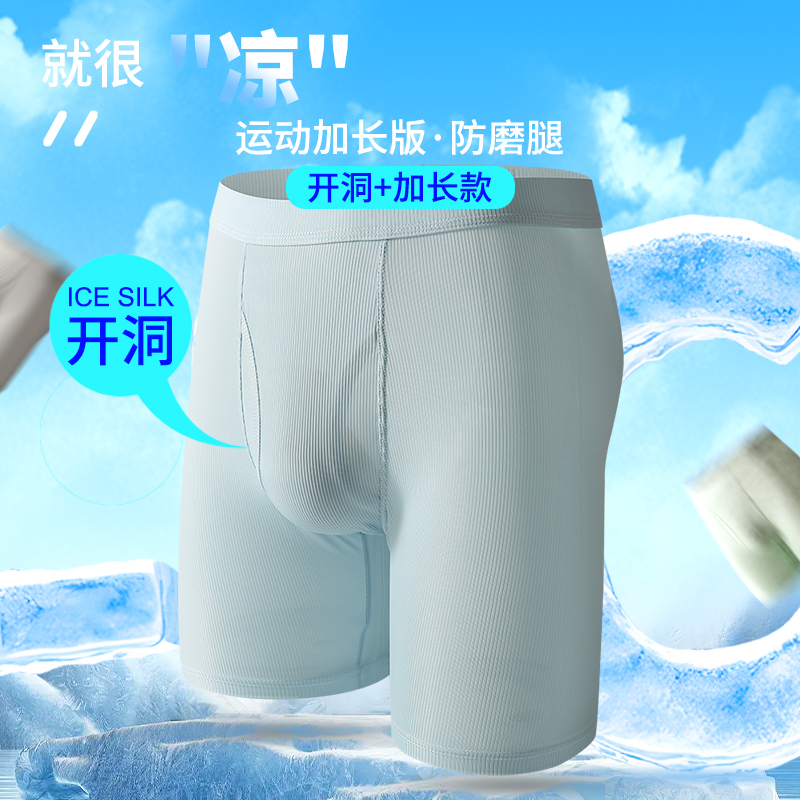 新款直销纯峰男士运动内裤男冰丝网孔平角裤加长款跑步紧身防磨腿