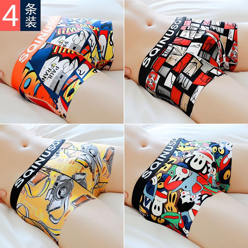 男士内裤夏季冰丝平角裤个性潮流印花四角裤宽松弹力中腰裤衩